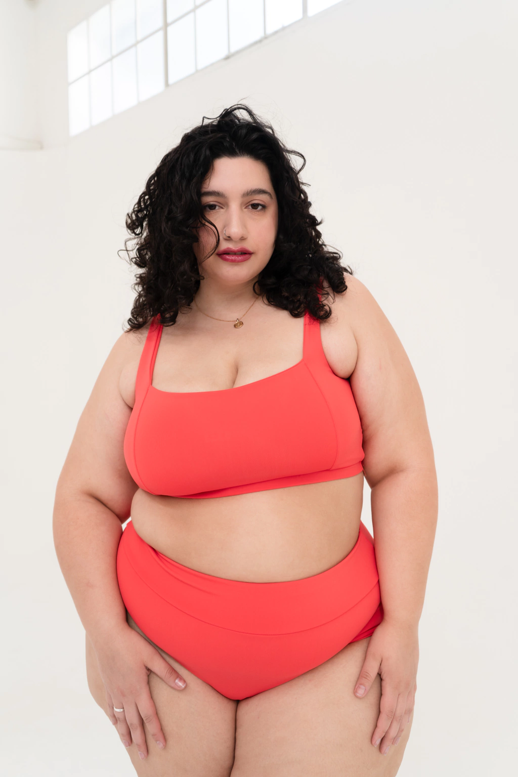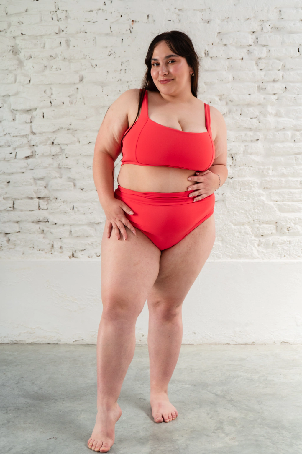Corpiño realizado en tricot lycra color Coral, es un tono super delicado, la medida justa entre naranja y rojo. Detalle de breteles anchos super cómodos y recortes en zona de busto para mejorar el calce. Además cuenta con una cintura de 3cm con elástico embutido.